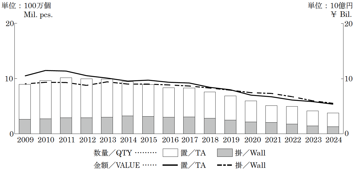 - 4.時計完成品の国内出荷の推移(2009年~2024年)