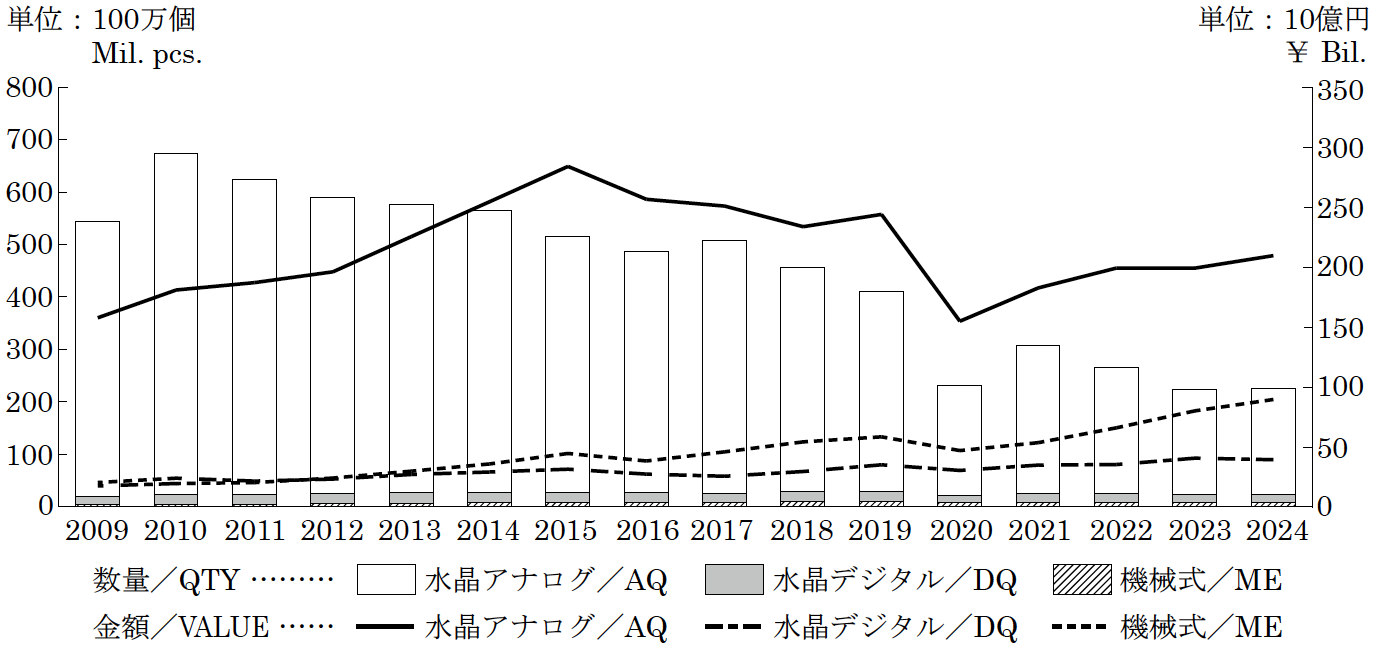 - 1.時計の国内生産の推移(2005年~2024年)